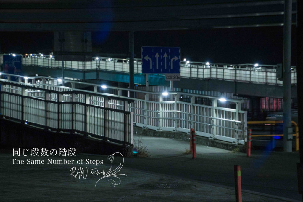 同じ段数の階段 いつも同じ段数の階段 足音は少し遅れて重なり 振り向かない約束が夜灯りの下でほどけた 「またね」 言葉は手すりに残り先に消えた — atch-k The Same N... -