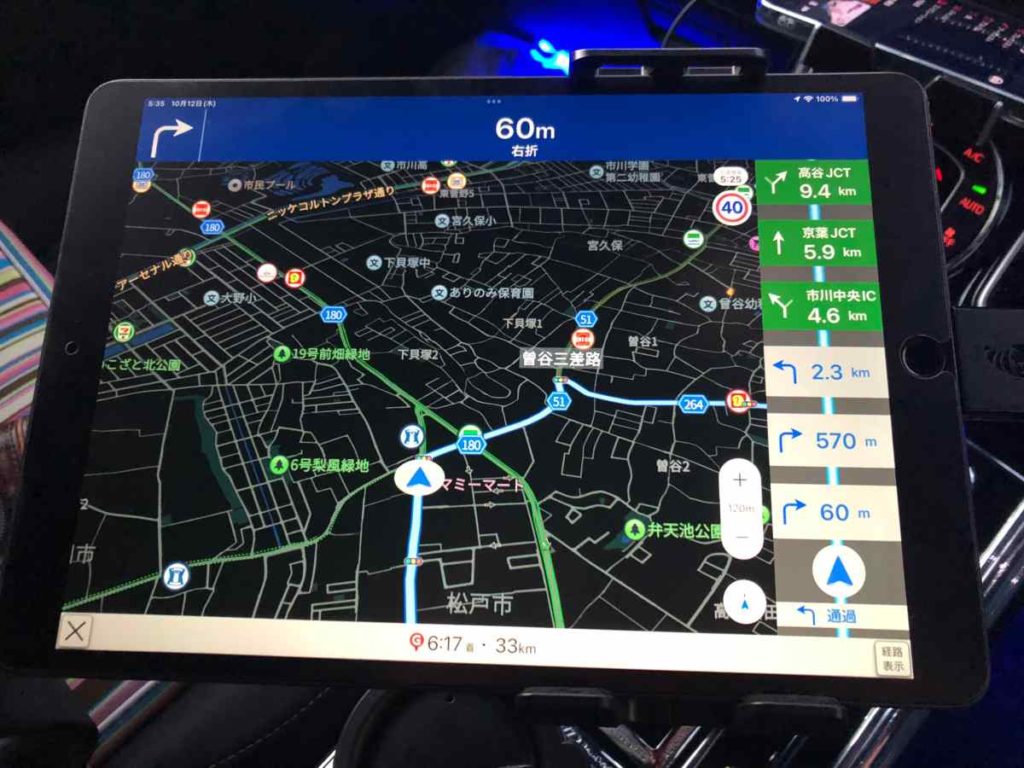 iPadのWi-Fiモデルでもカーナビとして普通に使える。