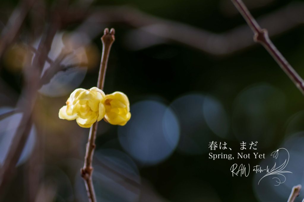 春は、まだ 真冬の朝。 細枝に蝋の黄。 冬の影を透かすと 花の奥に光が溜まる。 香りはまだ届かない。 — atch-k Spring, Not Yet A Midwinter Morning. On a slender tw... -
